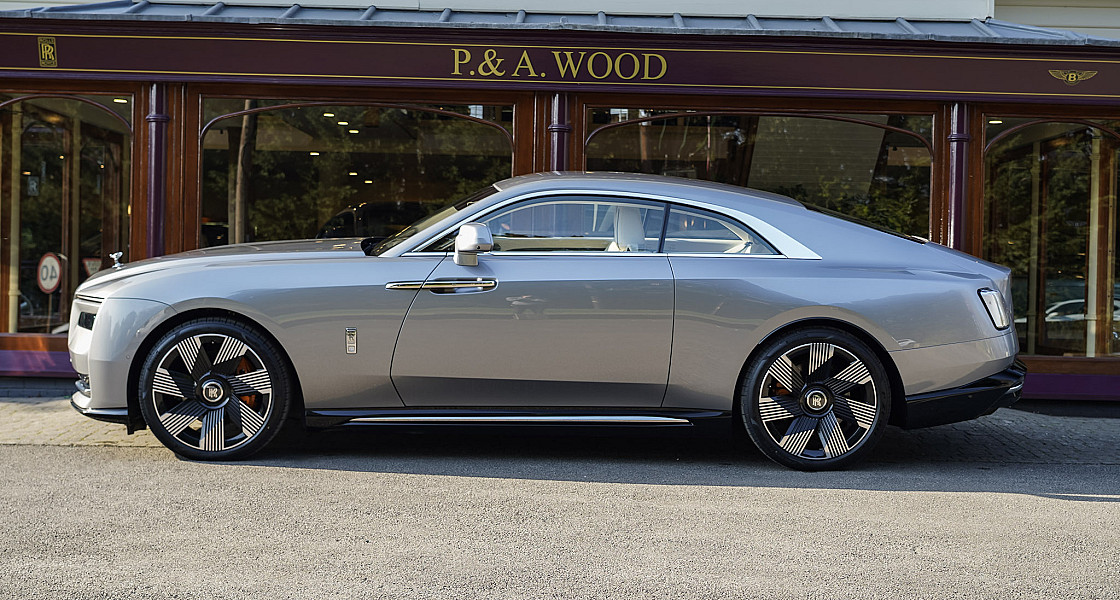 Rolls-Royce Spectre finished in Jubilee Silver.